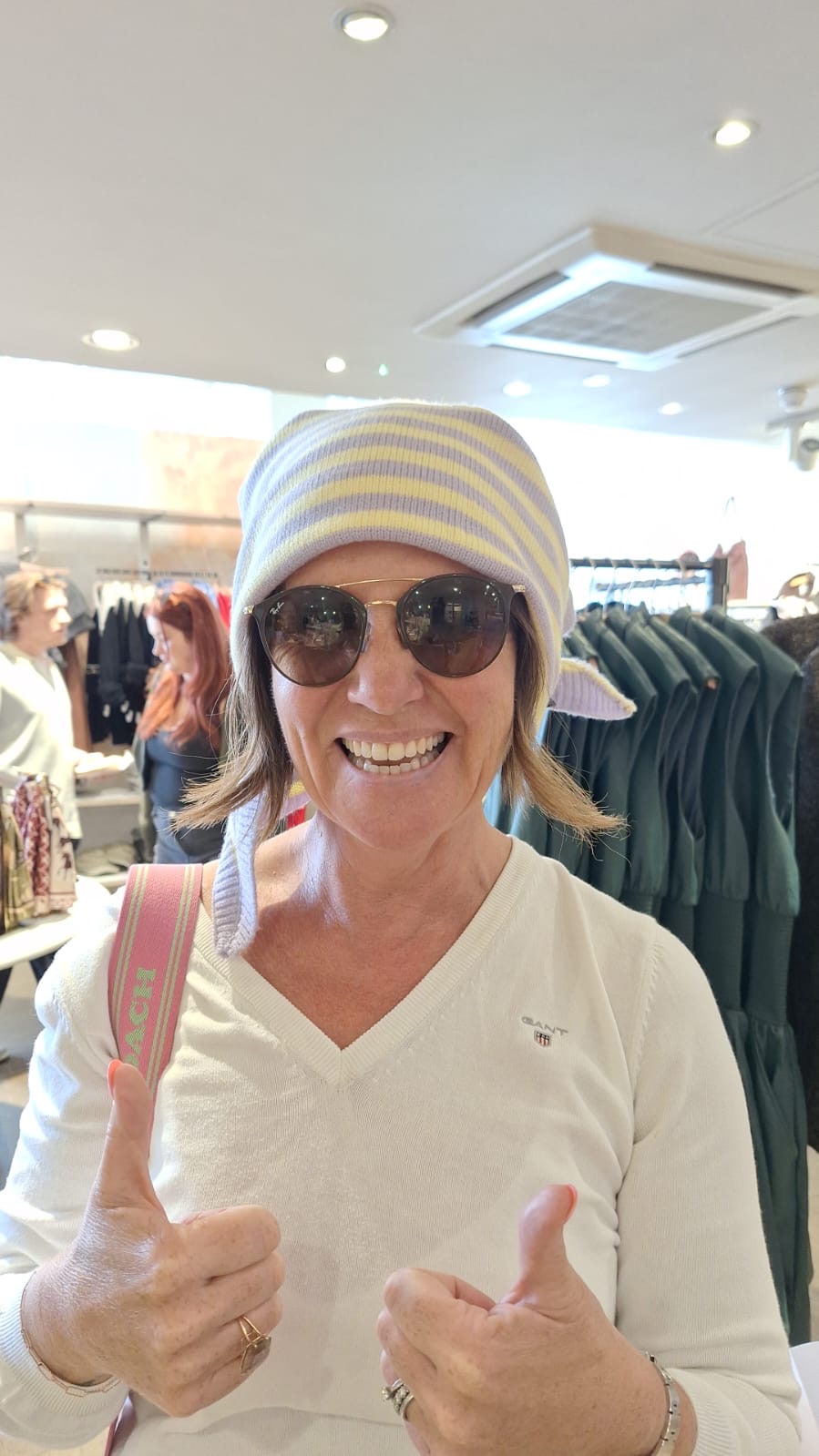 I get migraines so the thought of the cold cap fills me with horror so I’m going on Temu @molly.m to look at wigs! I tried on a gorgeous bandana in Anthropologie photo below!