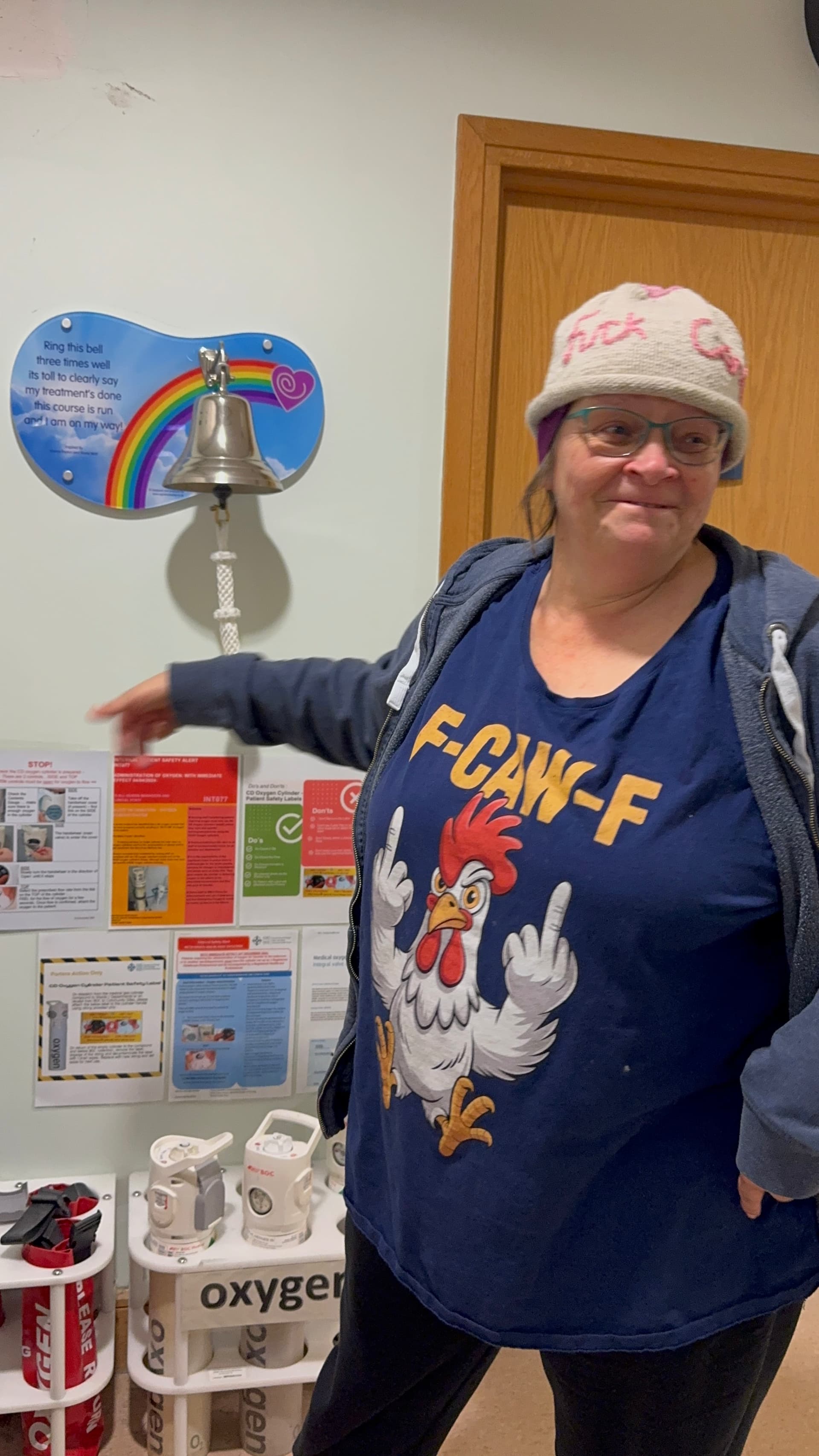 Boob hat courtesy of my talented sister. Presence of f-caw-f meme (directed at the cancer, not the staff!) down to me seeing it on a post of @lumpybyebye (ta chick, have been having lots of fun with it).
